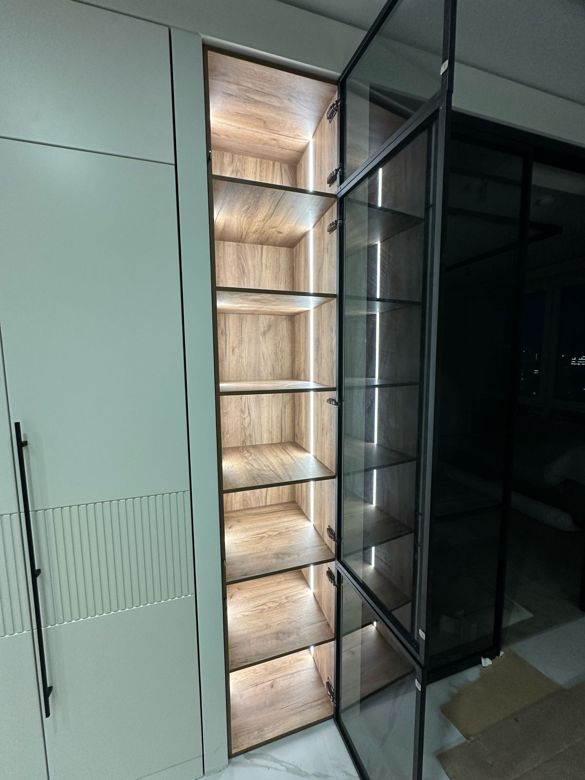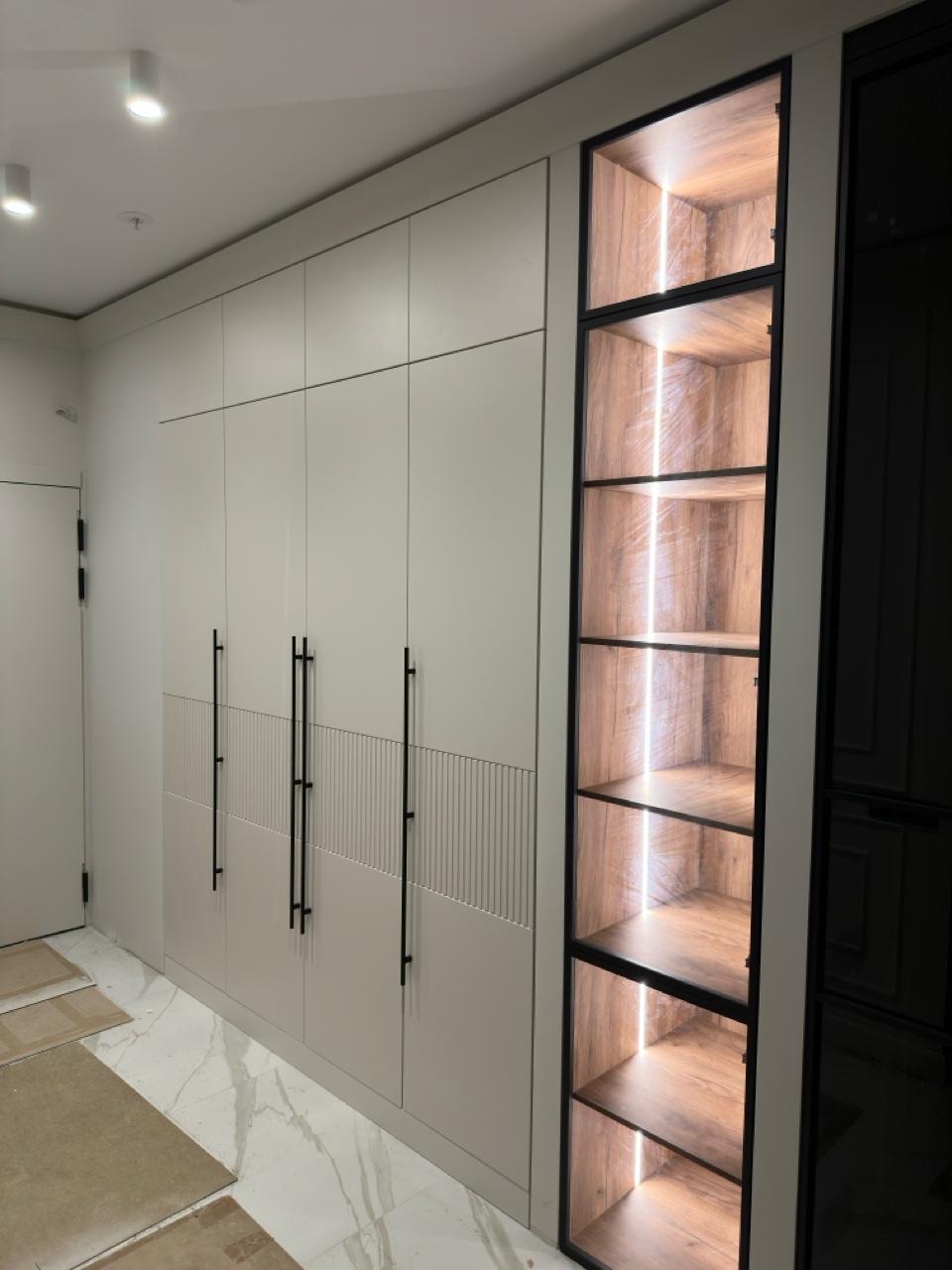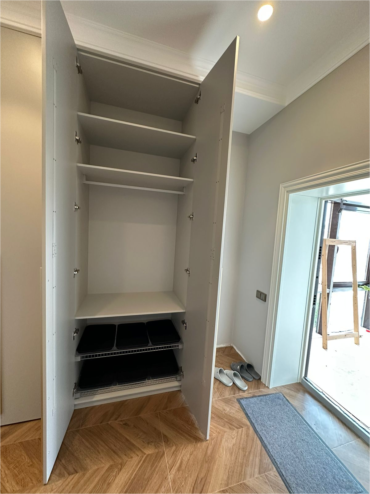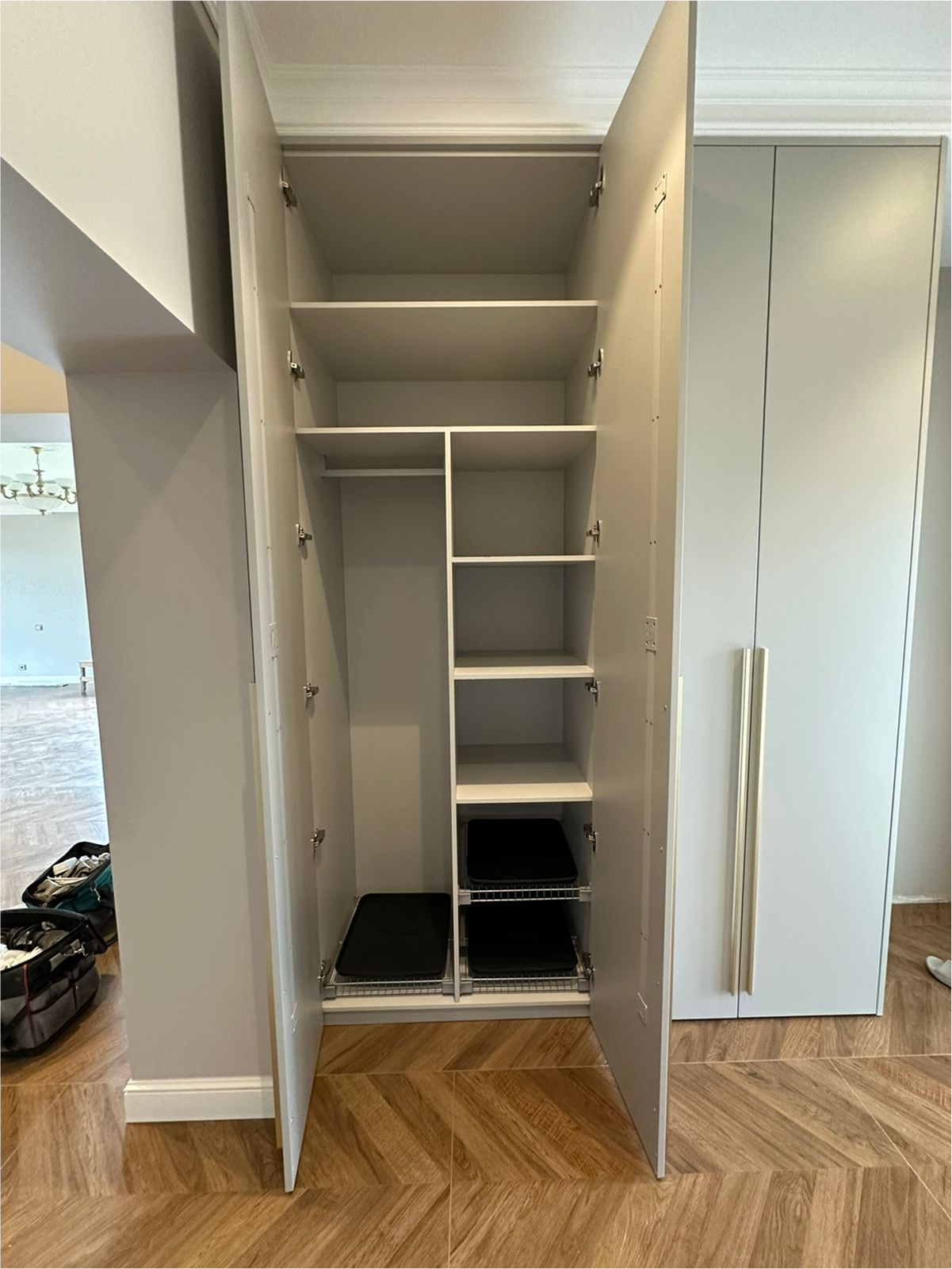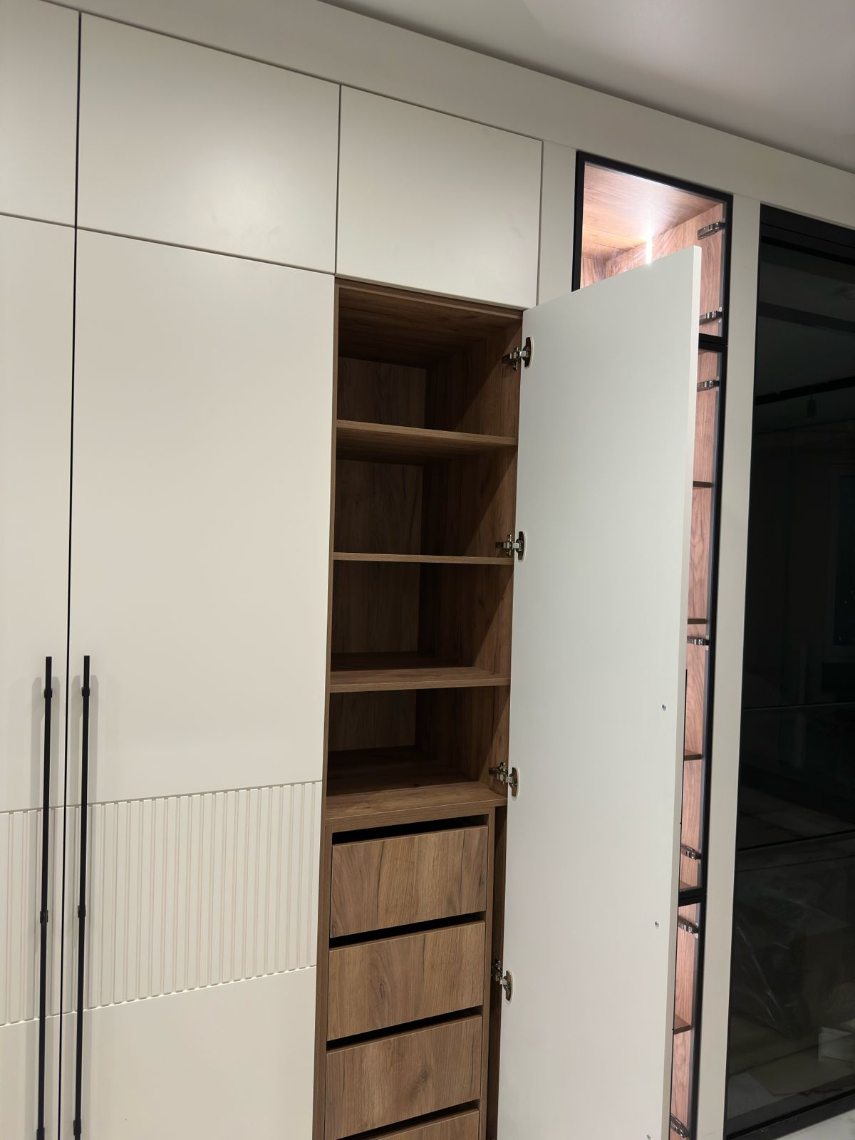 Шкаф встраиваемый из ЛДСП, производитель EGGER. Фурнитура премиального качества Hettich. (Петли, выдвижные механизмы, двери и т.д.)
